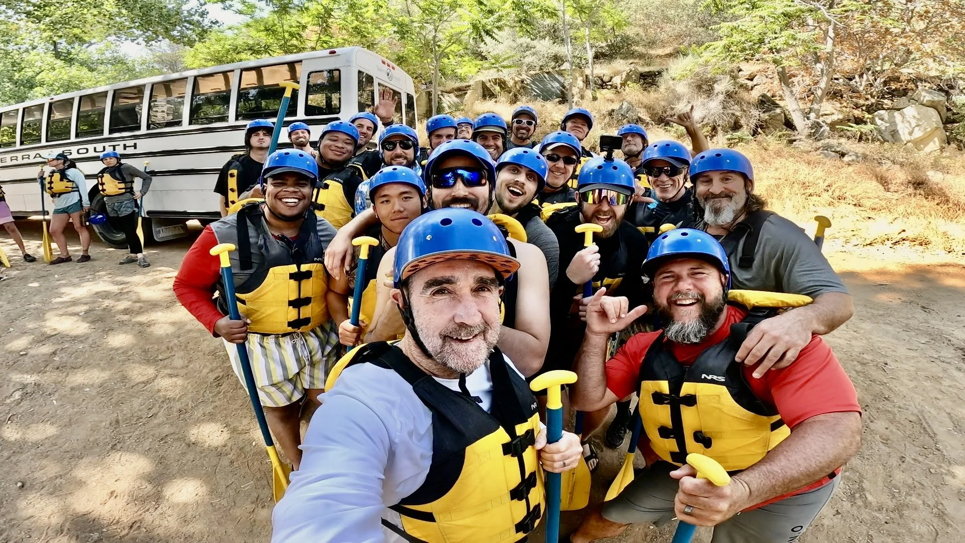 Think of the circus strong man. Bald. Mustache. Doesn’t smile.
